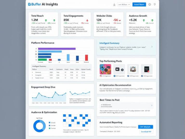 Buffer has transformed its analytics platform with AI-powered insights that automatically identify content performance patterns, optimal posting strategies, and audience engagement trends without requiring manual data analysis. The enhanced Buffer Analyze system provides intelligent recommendations for posting frequency, content types, and timing…